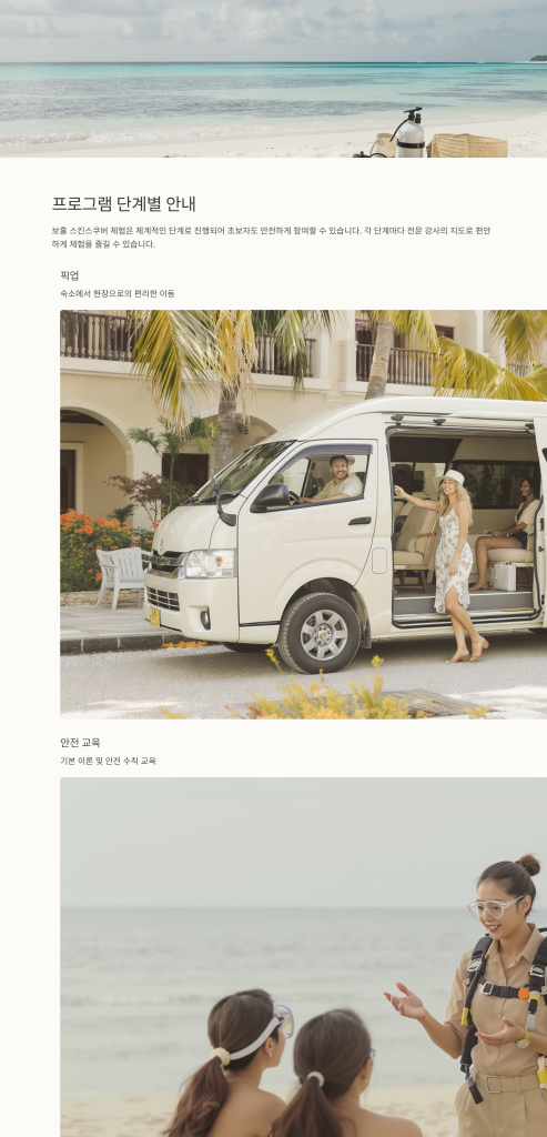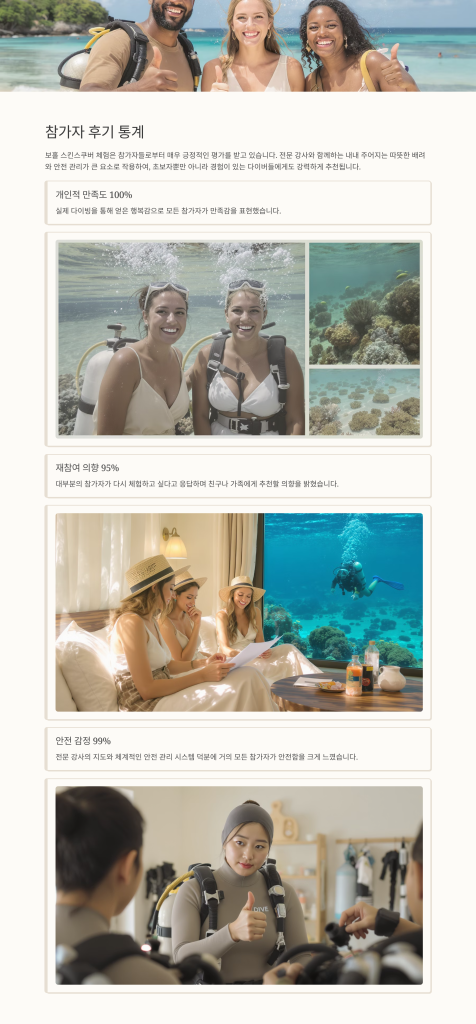 | 100% 개인적 만족도 | 실제 다이빙을 통해 얻은 행복감 |