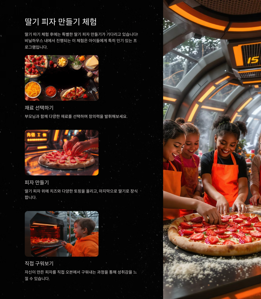 | 체험 내용 | 딸기 따기, 피자 만들기, 퐁듀 체험 등 |