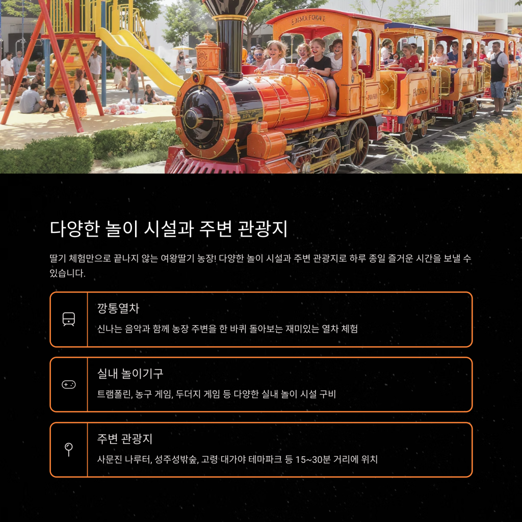 | 딸기 따기 | 직접 딸기를 따고 시식할 수 있는 경험 제공 |